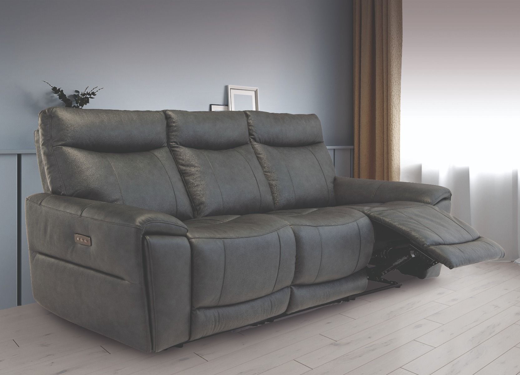 Elegant and sophisticated with soft padded arms and a supportive high black design, crafted for complex relaxing comfort. The electric reclining motion allows you to independently adjust your neck support as you sit back, feet up and relax. You can even charge your phone thanks to the integrated usb/c ports included as standard. Complimented by the vintage look of leather, this sofa is an effortless statement piece