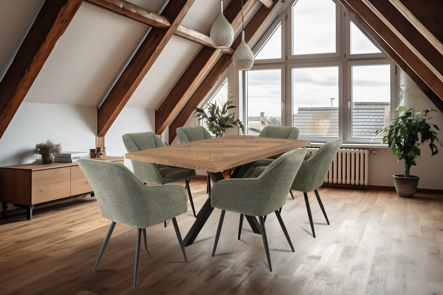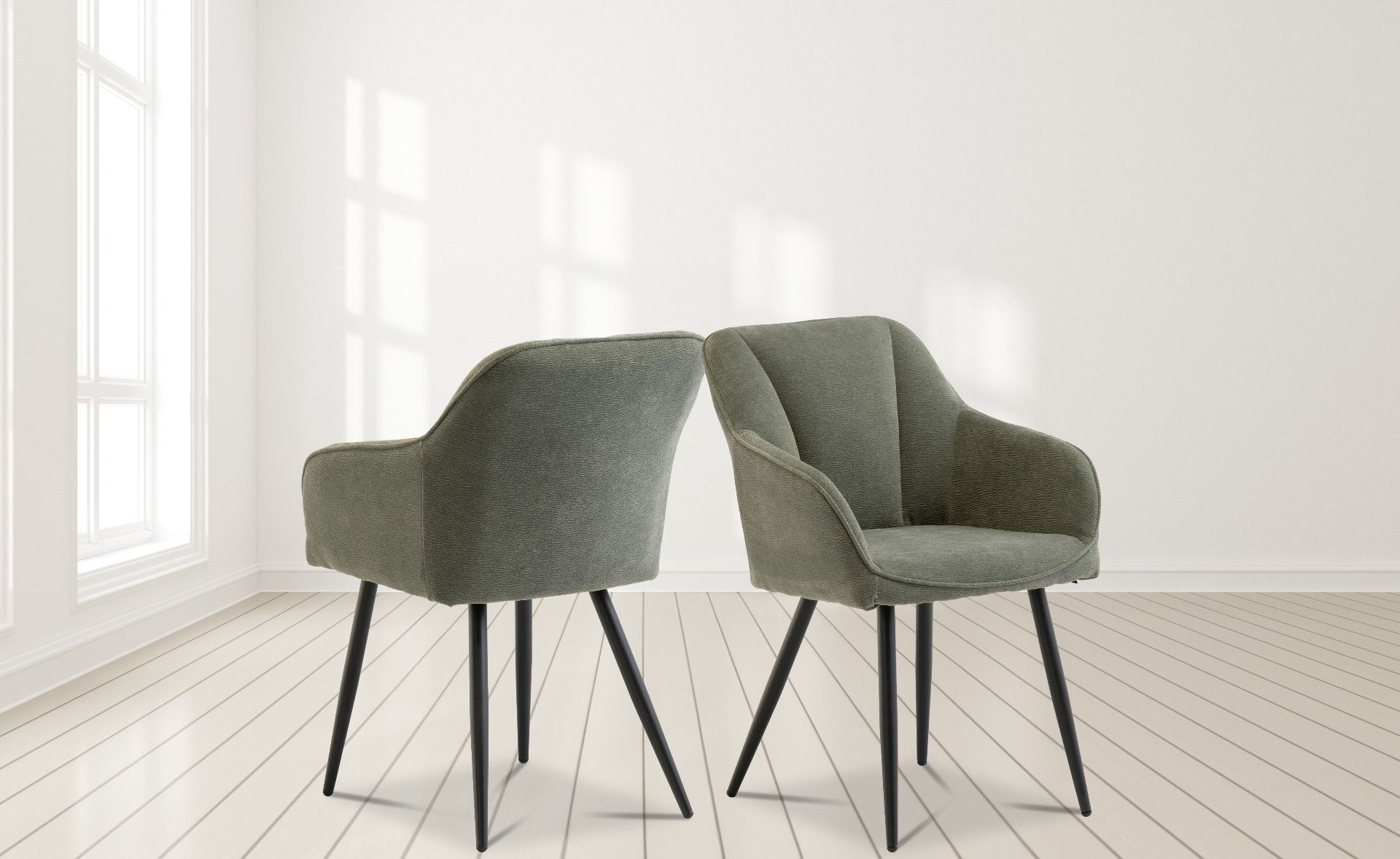 A beautifully tailored soft touch textured fabric chair Finished with black powder coated legs.